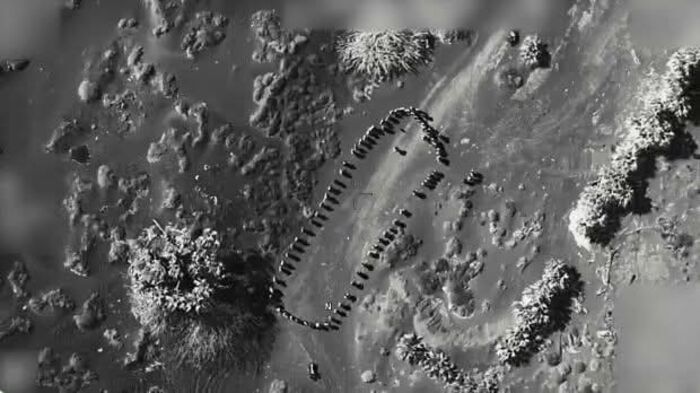 وظهر في الفيديو الذي تم التقاطه من الطائرات مجموعة تتجاوز الستين شخصا تقريبا في منطقة خالية من السكان وهم يصطفون على شكل حلقة .. قبل ان يتم قصفهم ويبدو ان احدا لم ينجو..