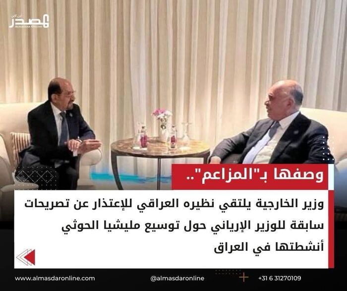 اذ انه و خلال لقاءه نائبُ رئيسِ مجلسِ الوزراءِ ووزيرُ الخارجية العراقي ، فؤاد حسين، يومَ الجمعة الماضيةفي مقرِّ إقامته بمدينة أنطاليا، اعتذر الزنداني عن تصريحات أدلى بها وزيرُ الإعلامِ والثقافةِ والسياحةِ ، معمر الإرياني، عبرَ منصة “إكس”، وكشفت عن “تمكُّنِ ميليشيا الحوثي الإرهابية من توسيع أنشطتهم في العراق بالتنسيق مع الفصائل العراقية”.