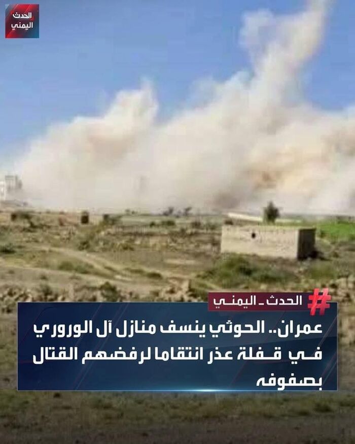 فجرت ميليشيا الحوثي منازل آل باكر الوروري في غارب السودة بمديرية قفلة عذر شمالي عمران بعد ساعات من الحصار وتفخيخها بعبوات ناسفة بسبب رفض الأسرة إرسال أبنائها للقتال في صفوف الميليشيا